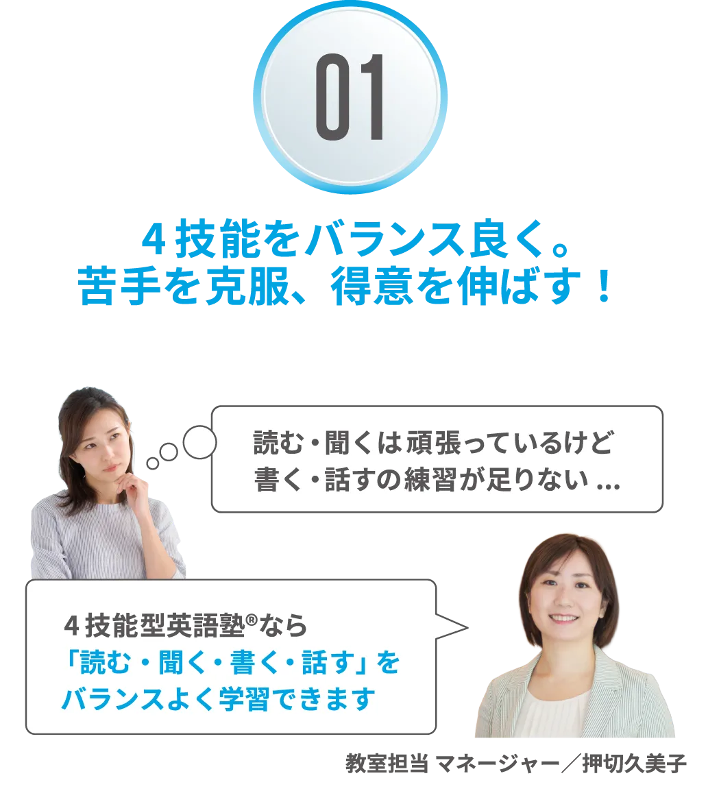 生徒一人ひとりが目指す将来や夢の実現に向け、英語の勉強はもちろん、勉強面以外のサポートにも注力しています。