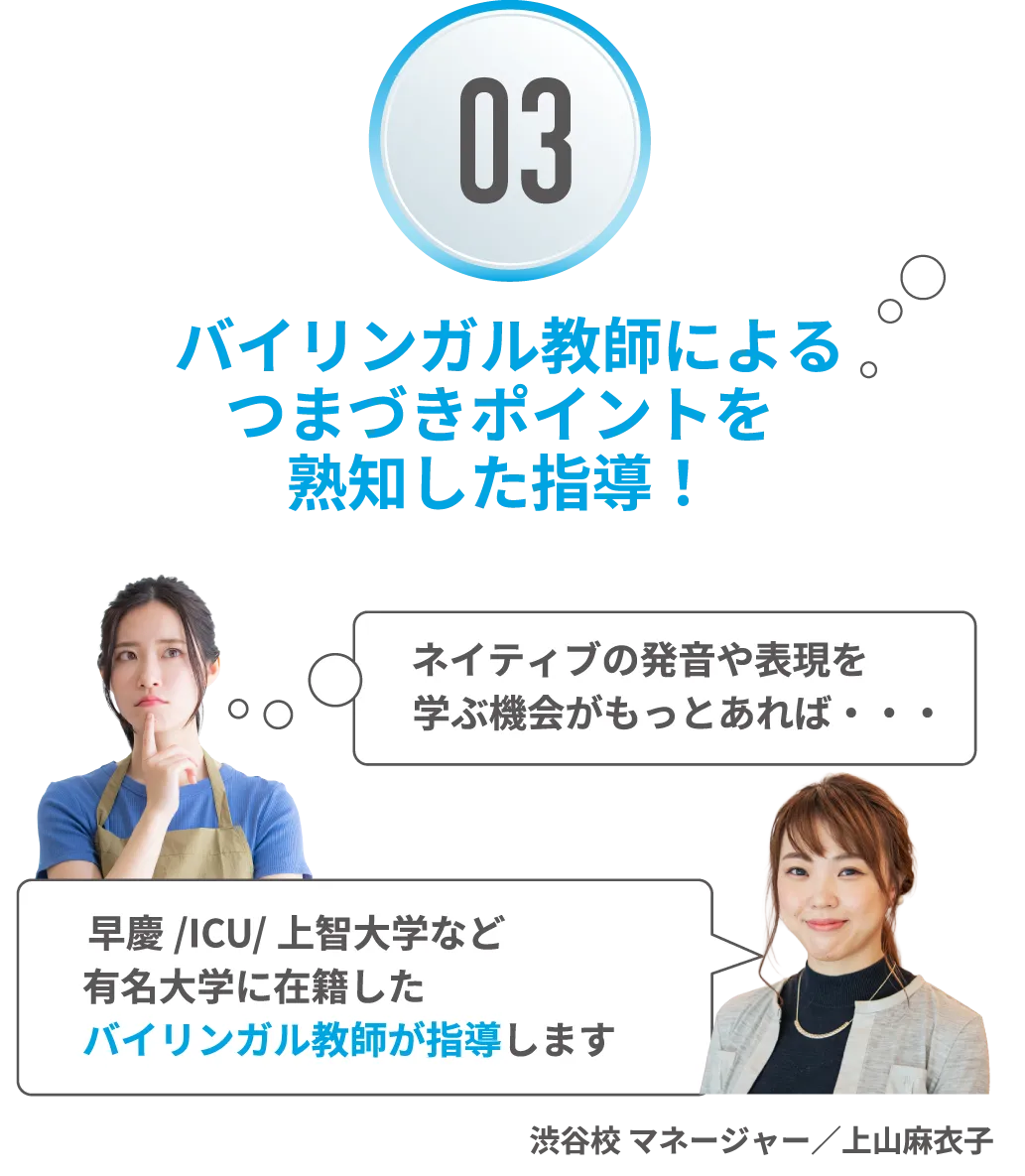 英語が初めての生徒には日本語を使ったサポートも行いますので、ご安心ください。