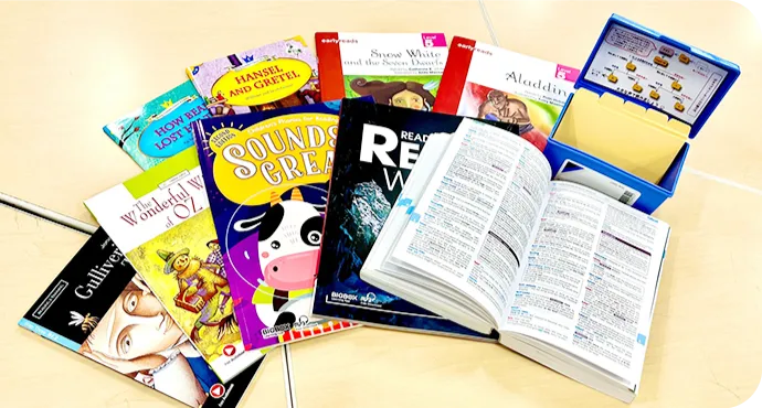 レベル分けされた英語のストーリーブックを中心に、英語4技能を楽しく、バランスよく学びます。